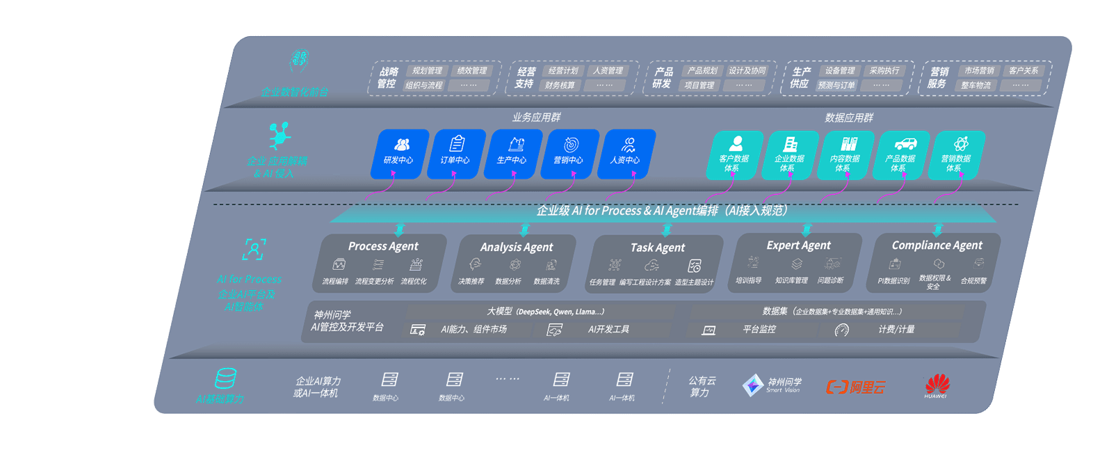EBpay问学智车解决方案是一套基于AI技术的汽车行业智能化系统,,,,覆盖从底层算力到顶层AI应用的全栈方案。。方案由算力层、、模型层和应用层组成:算力层,,方案支持多种一体机配置,,具备云端灵活部署、、多云适配以及动态优化计算资源的能力;模型层,,EBpay问学平台版提供了企业级AI应用一站式构建与管理平台,,支持基于后训练强化技术的汽车企业专属模型的训练、、评测和运营;应用层,,,EBpay问学DeepSeek版提供包括超级员工、、智能招采、、、智能营销、、、智能客服、、AI for BI等一系列解决方案,,可助力汽车行业实现数字化转型,,让管理更智能、、、响应更敏捷。。